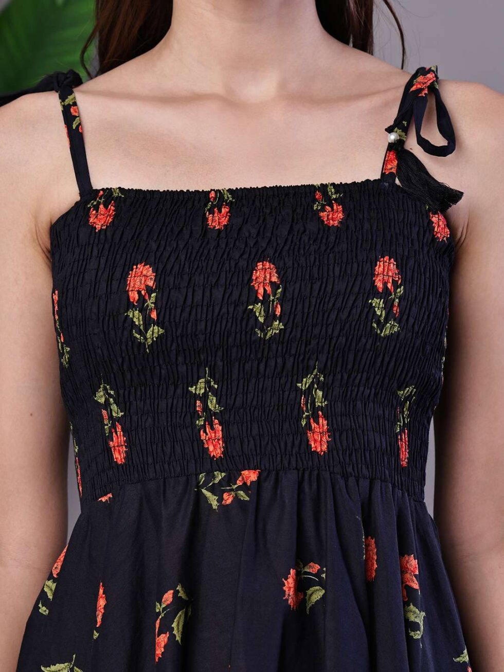 Be the first to review “Women’s Black Floral Printed Cotton Handkerchief Hem Dress Midi Dresses”